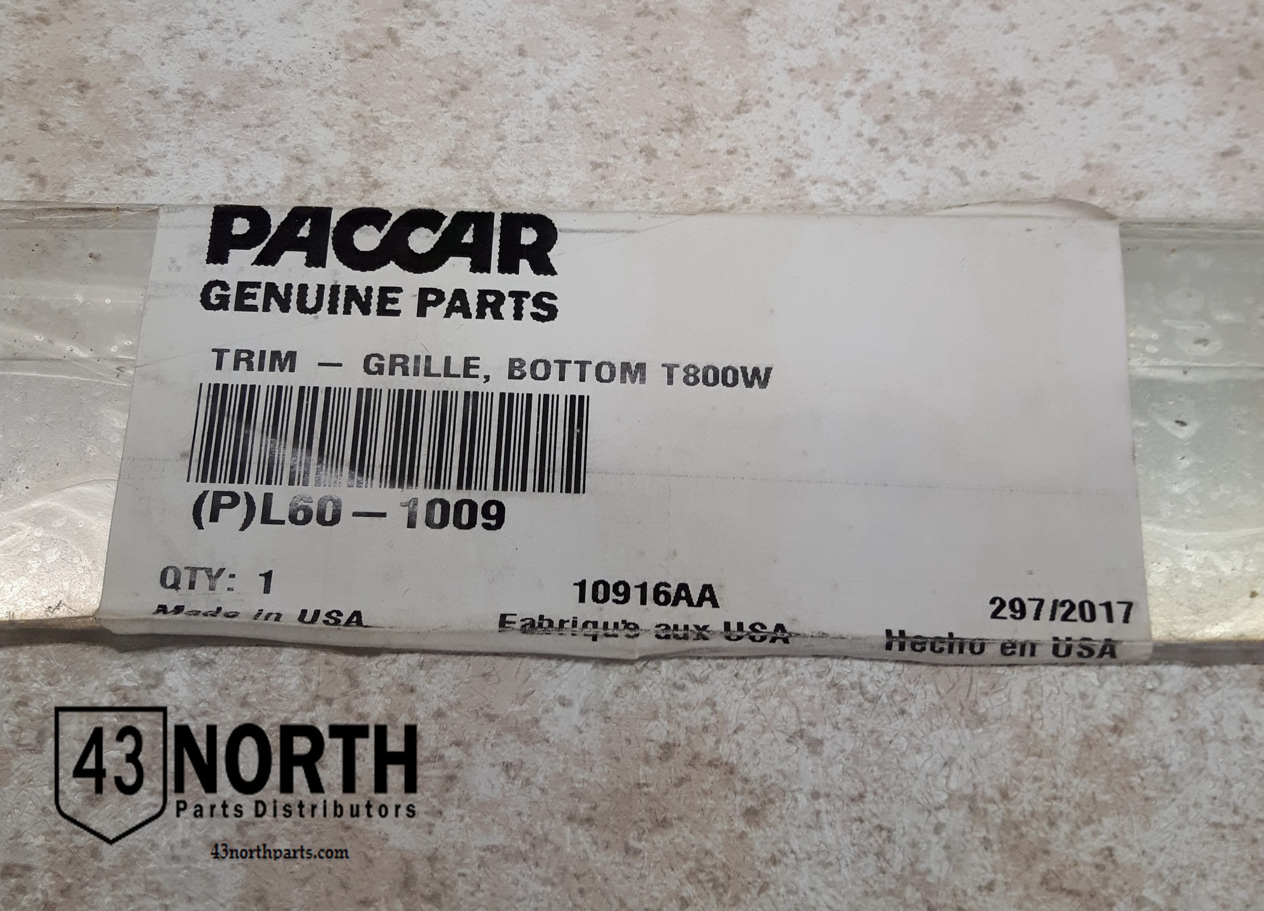L60-1009 New Kenworth T800 Wide Hood Grille Moulding