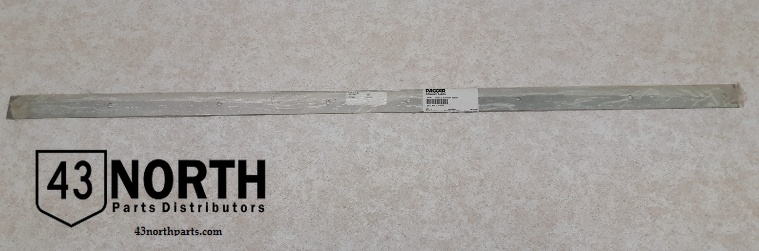 New Kenworth T800w or wide hood bottom grille shell molding / trim. runs across the bottom edge of the grille.