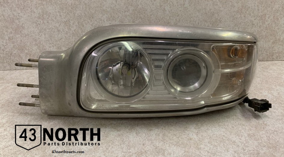 Used Peterbilt Drivers side / Lt headlight assy. Has mounting studs and all wiring.